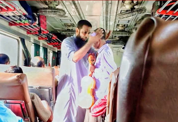 ঘটনার সময় ধারণ করা একটি ছবিতে দেখা যায়, মুখে লম্বা দাড়ি ও সাদা পাঞ্জাবি পরা এক ব্যক্তি ওই শিল্পীর ওপর চড়াও হয়েছেন। ছবিতে নির্যাতনের শিকার শিল্পীর অসহায় মুখচ্ছবি ফুটে উঠেছে, যা দেখে ক্ষোভ প্রকাশ করছেন অনেকে। ট্রেনের ভেতরে অন্য যাত্রীরা উপস্থিত থাকলেও, তাৎক্ষণিকভাবে কেউ ওই ব্যক্তিকে থামানোর চেষ্টা করেছেন কিনা, তা স্পষ্ট নয়।